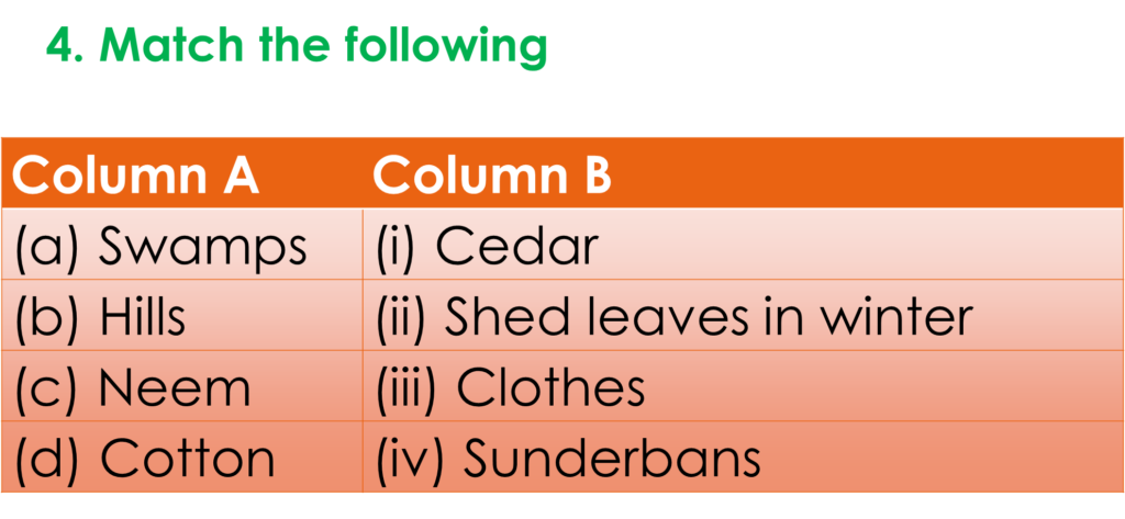 | (c) Neem | (ii) Shed leaves in winter |